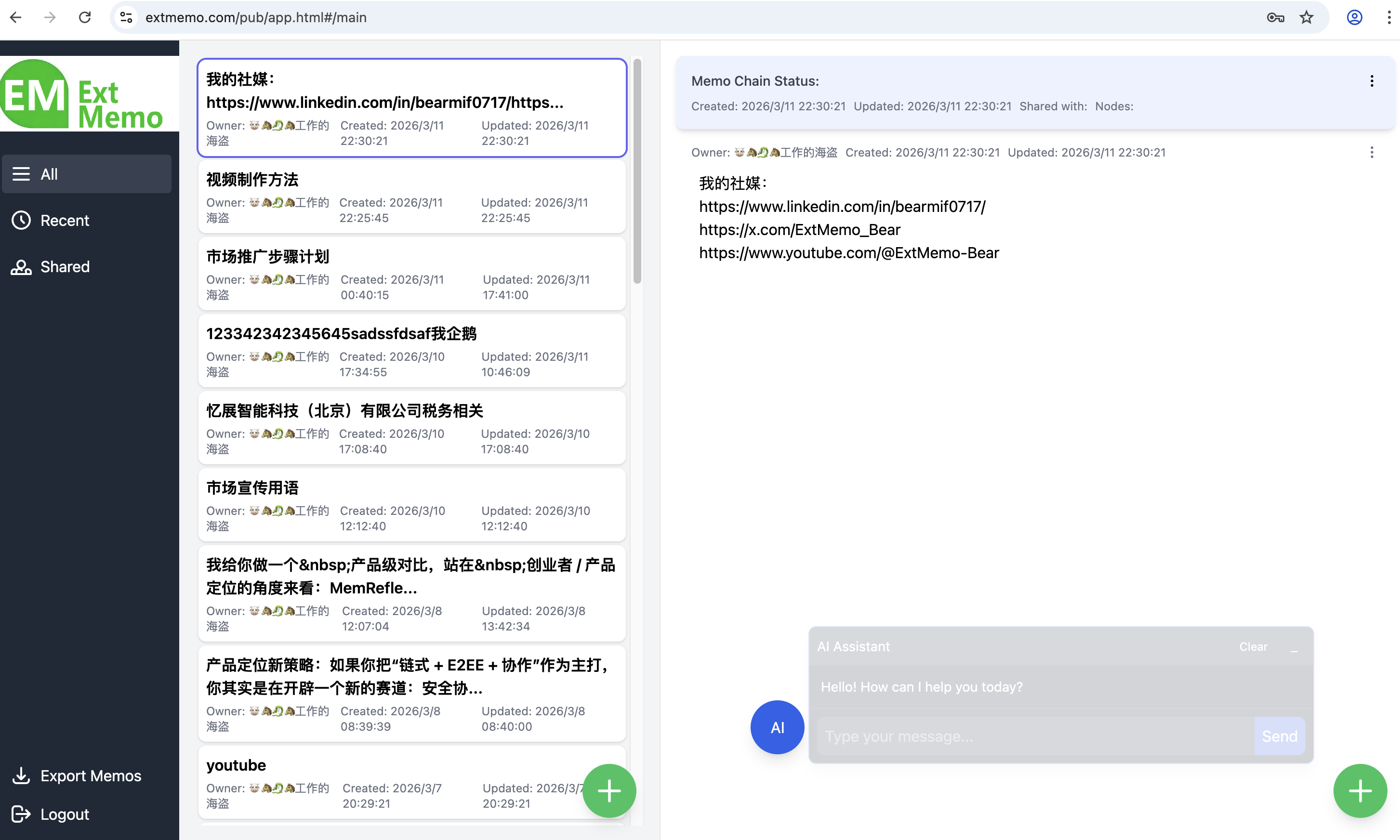 AI-Powered Mind Extension Turn your memos into a living conversation. By opting to store general information in our standard secure cloud, our integrated AI learns from your data to answer questions.